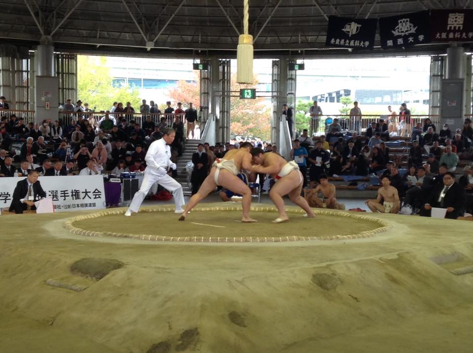 大浜公園相撲場で開催され来賓として祝辞を述べました。 この大会は両国国技館と大浜公園相撲場で各年で行われており、文字通り大学相撲の日本一を決める歴史と伝統のある大会です。 我が母校中央大学も参加しており、学生の好取り組みが続いています。 本日は個人戦、明日は団体戦が行われて熱戦が繰り広げられます。