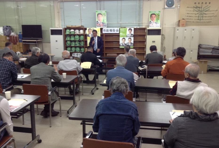 改選後初めての市政報告会でしたが、多くの方に参加頂き感謝。 私からの市政報告会は約40分、その後の質疑応答が約50分と大幅に時間延長をして活発にご意見、質問を頂きました。 同会派の青谷議員もこっそり参加頂き盛り上げて頂きました。