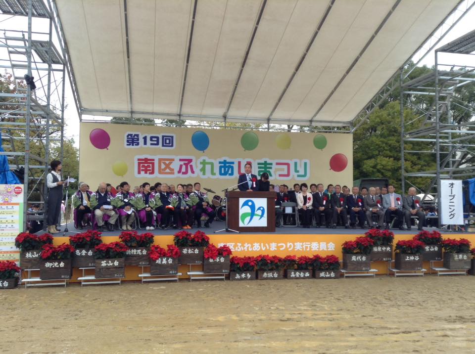 来賓挨拶からくす玉割り、14校区のブースを回り地元浜寺の熱々コロッケを頬張り、校区の皆さんの書画などの芸術作品を鑑賞。 午前中はなんとか天気が回復し、沢山の知人とお目にかかれ楽しい時間を過ごしました。