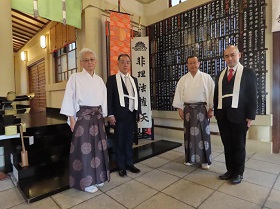 石津の北畠顕家公保存会の皆さん及び久野潤先生と阿部野神社に正式参拝いたしました。